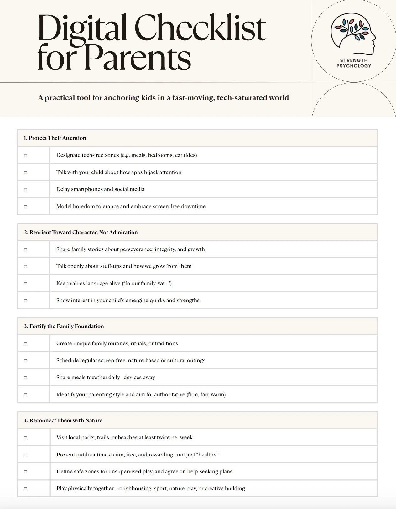 If the original AI childhood destruction playbook was a warning, then this article is a response: parents are not powerless. We are the culture-makers in our homes. While the world may be pulling our kids toward distraction, disconnection, and distress, we can guide them back to what matters: connection, character, community, and meaning. That doesn’t mean perfection or unplugging entirely. As a parent and a child and adolescent psychologist, my advice would be to choose things that are sustainable and align with your values. Your child won’t remember the content that went viral. But they’ll remember the family rituals you stuck to.