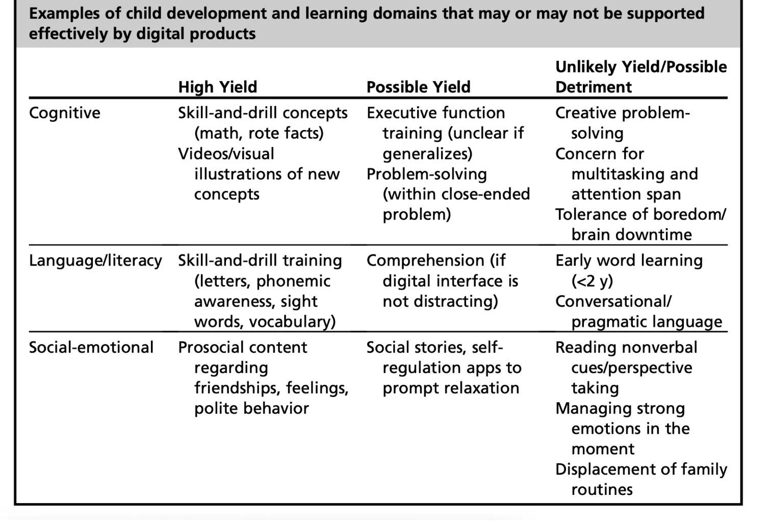 Appendix B: benefits yielded from screen exposure in early childhood (Radesky & Chistakis, 2016)